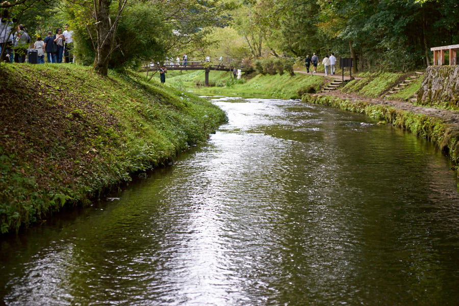 Along the stream, a well-maintained walking path invites strollers to enjoy the scenery. The soothing greenery by the water and the gentle sound of flowing water create a space where simply walking feels therapeutic. Viewed from the bridge, the river’s transparency and the swaying water plants were particularly striking.