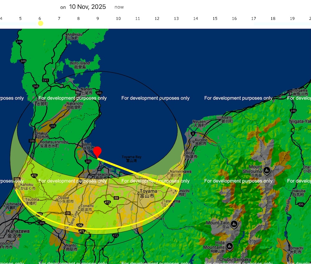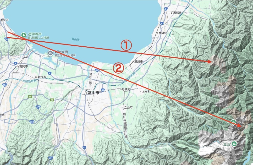 The timing of sunrise over the ridge line of Mount Tsurugi varies by season. I use a website called SunCalc. For example, around November 10th is precisely when sunrise over the ridge line of Mount Tsurugi can be seen (see Figure 3). Also, the weather is often unstable around this time, so the actual chance to capture “that moment” is limited.